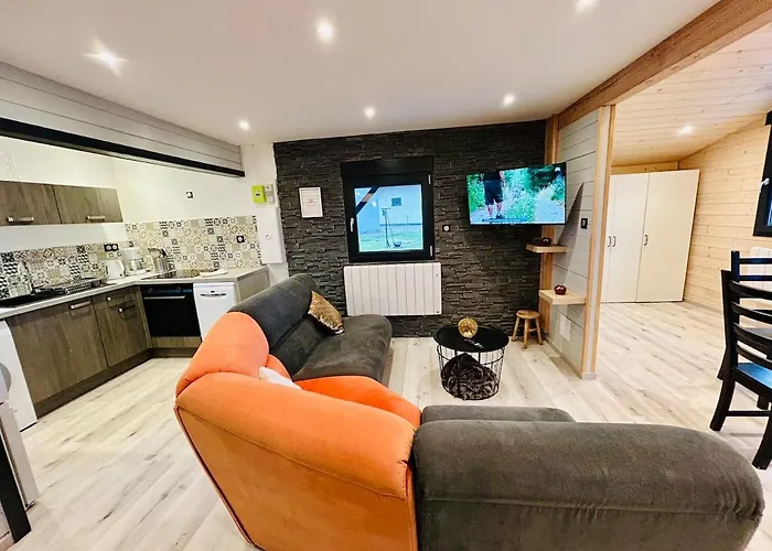 Situated 10 minutes by car from The Garden Berchigranges, Chalet Familial 2-6 Personnes Champdray invites guests to relax at a terrace.
